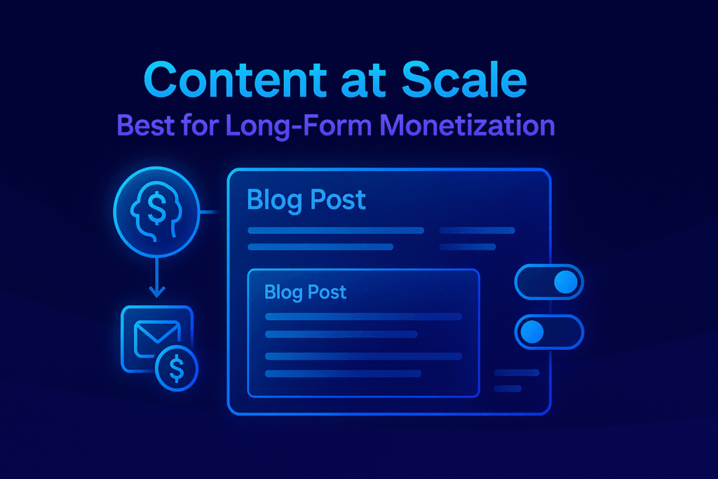 • Ideal if you’re looking to start a blog with AI or work to make money through content